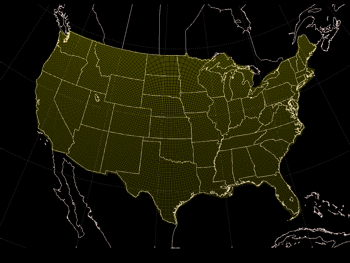 The HIGH() function can be used to obtain local maximas from the grid region of interest. The GWFS() gaussian weighted smoothing function can be used to reduce higher frequency features in the grid and focus on broader areas of interest. By using the GDCSV program, the locations of HIGH() output are output to a file for use in determining local mesoscale model domain centers. By masking the region, the model domains are ensured to be within the desired region.